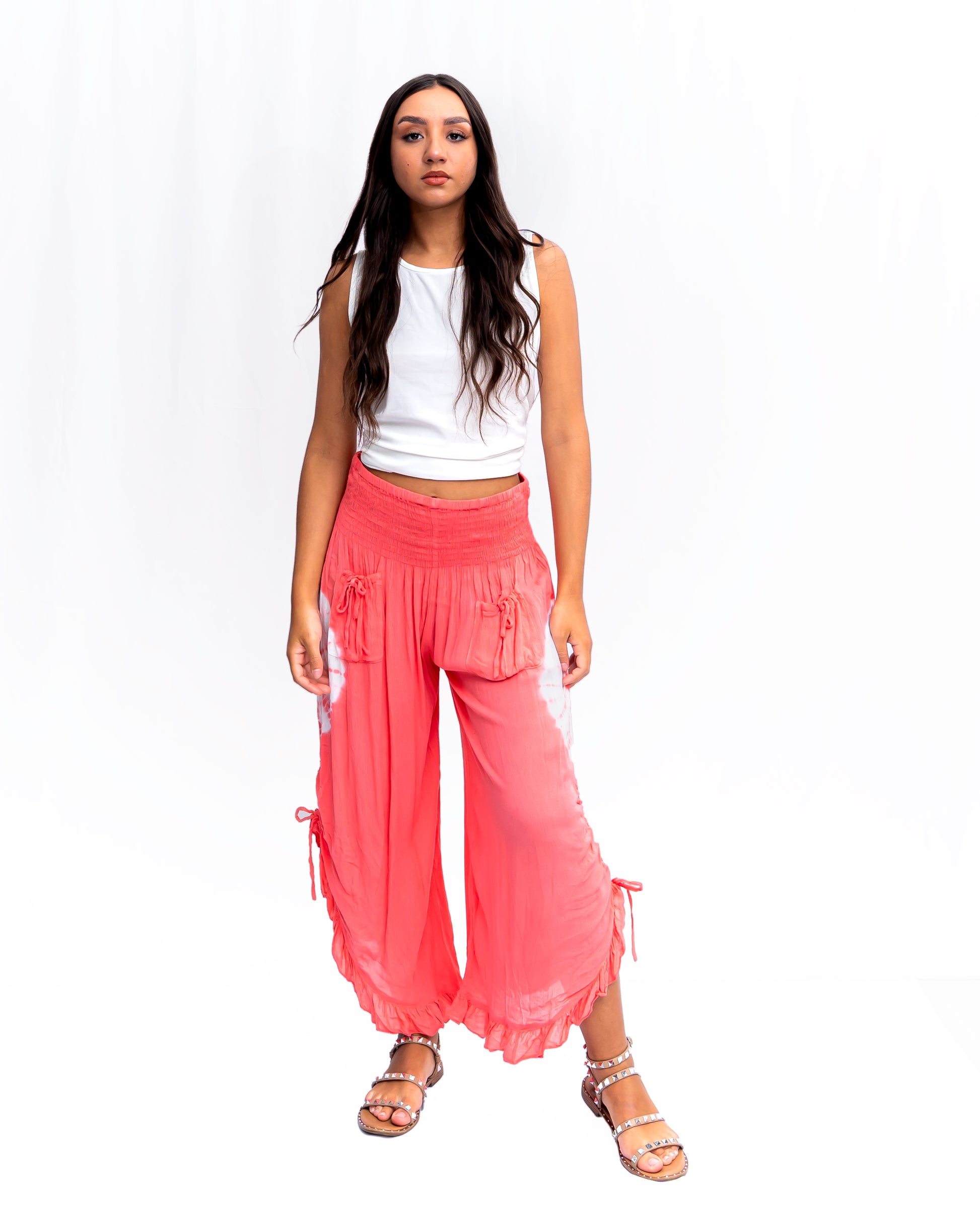 Rayon Tie-Dye Pants in Coral (P-15 TD)