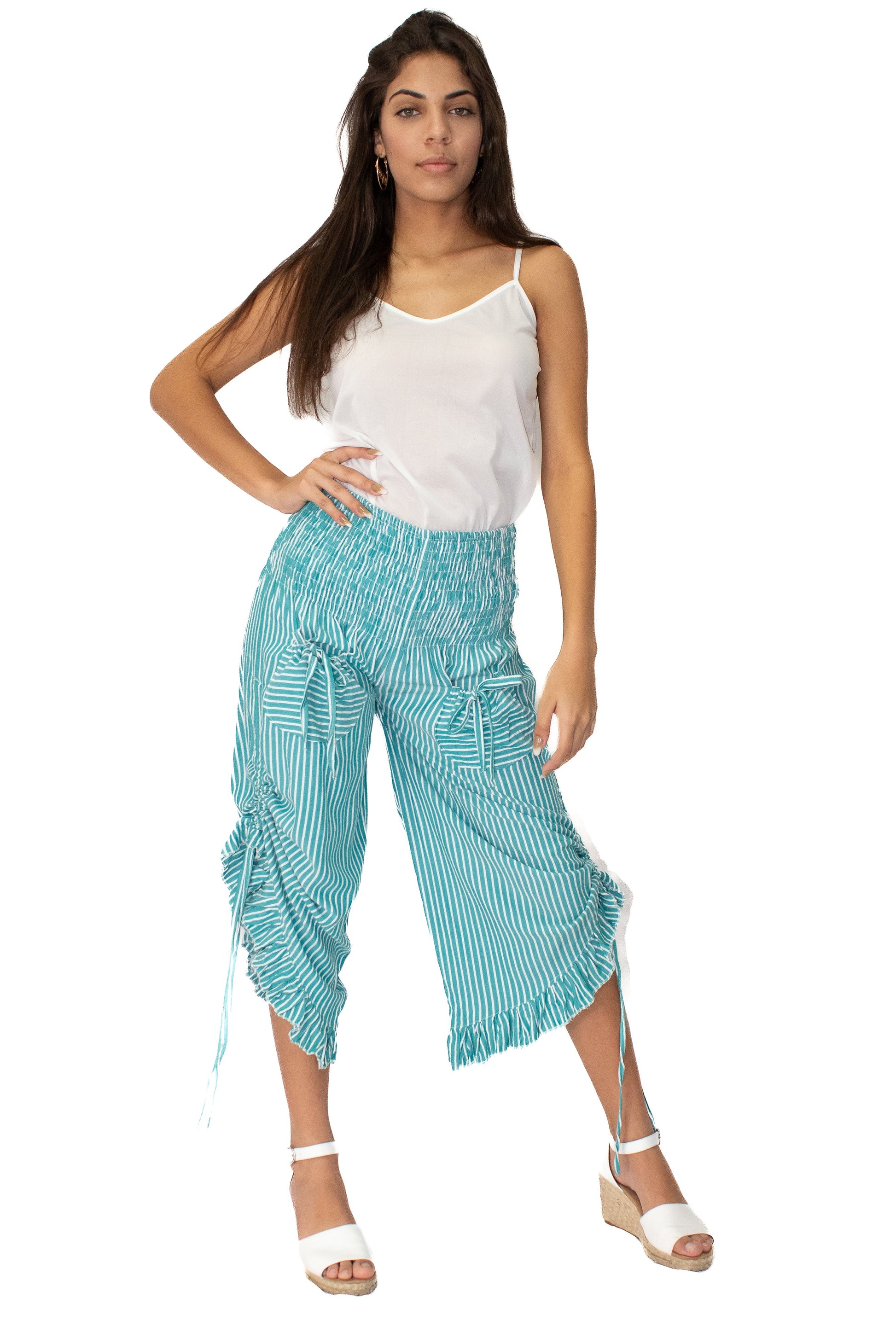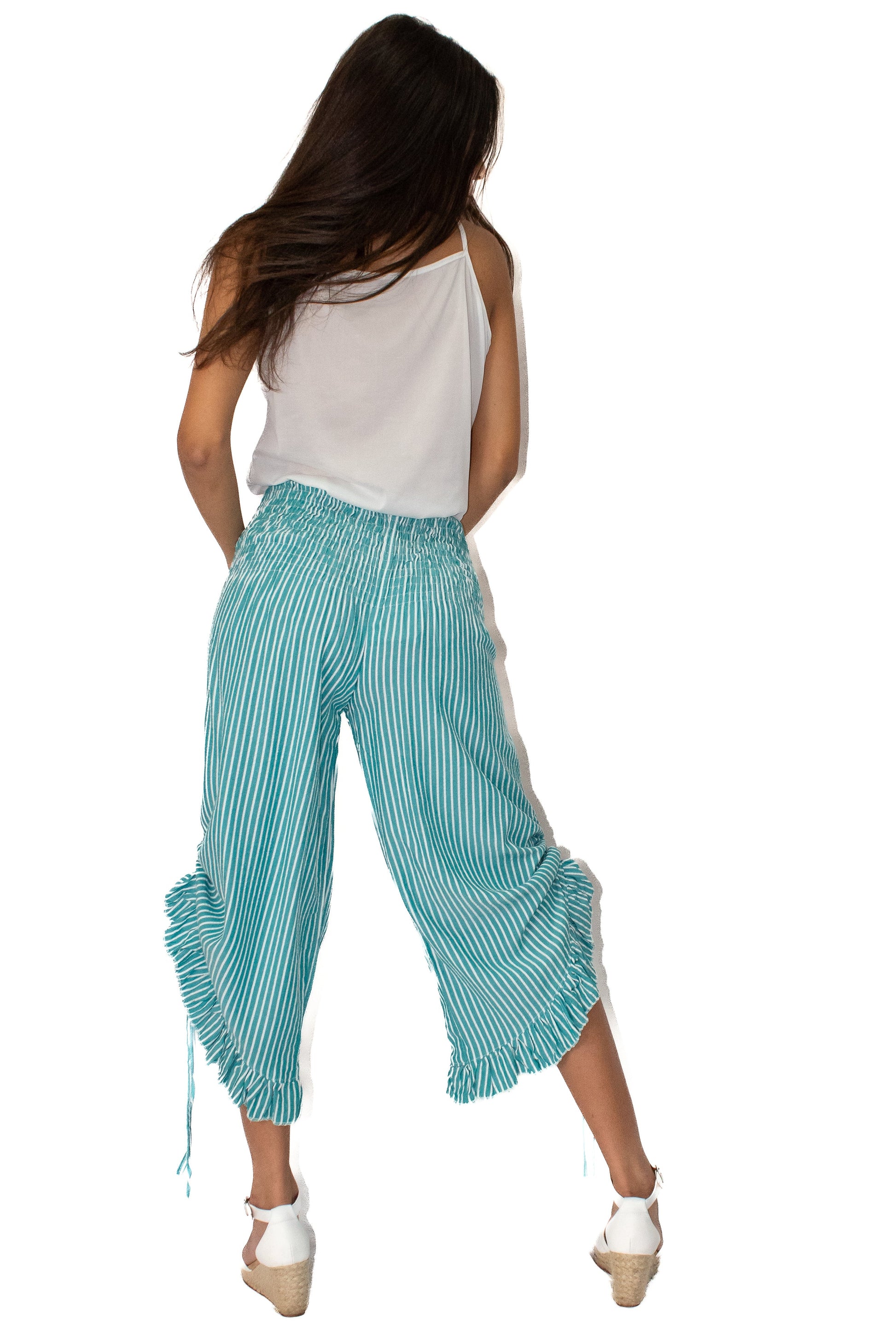 Rayon Vertical Stripe Printed Pants in Blue
